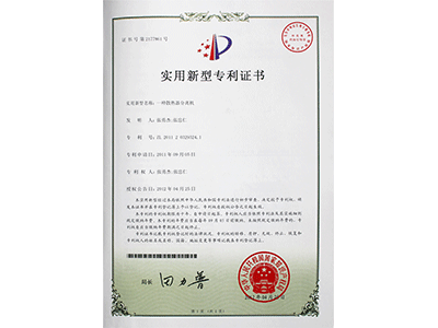 • 自主研發專利化產品,榮獲多項實用新型專利證書、發明專利證書。